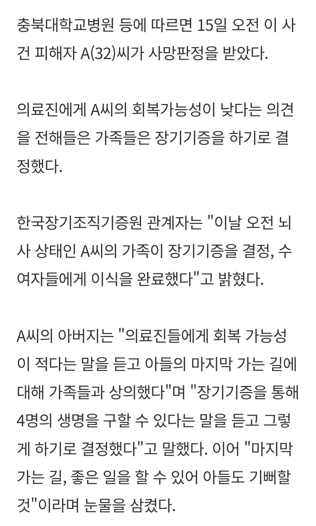 휴가 나온 군인에게 치여서 뇌사상태에서 결국은...